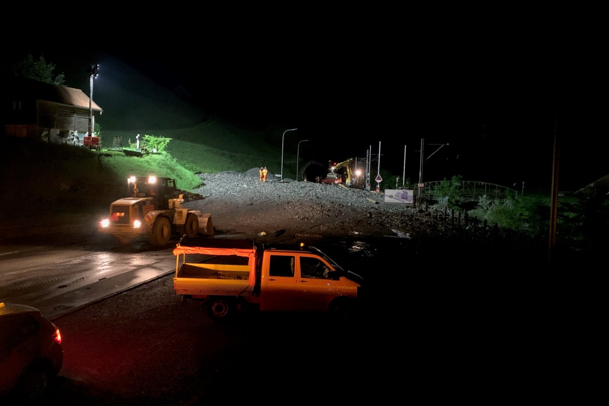 Zudem wurde das Zugtrasse der Zentralbahn unterspült, sodass auch der Zugverkehr eingestellt werden musste. Die Aufräumarbeiten sind im Gange und die Strasse kann frühestens im Verlaufe des Sonntagmorgens eingeschränkt wieder geöffnet werden. Mit Verkehrsbehinderungen ist zu rechnen. Rund ein Dutzend Personen im Bereich der Parketterie