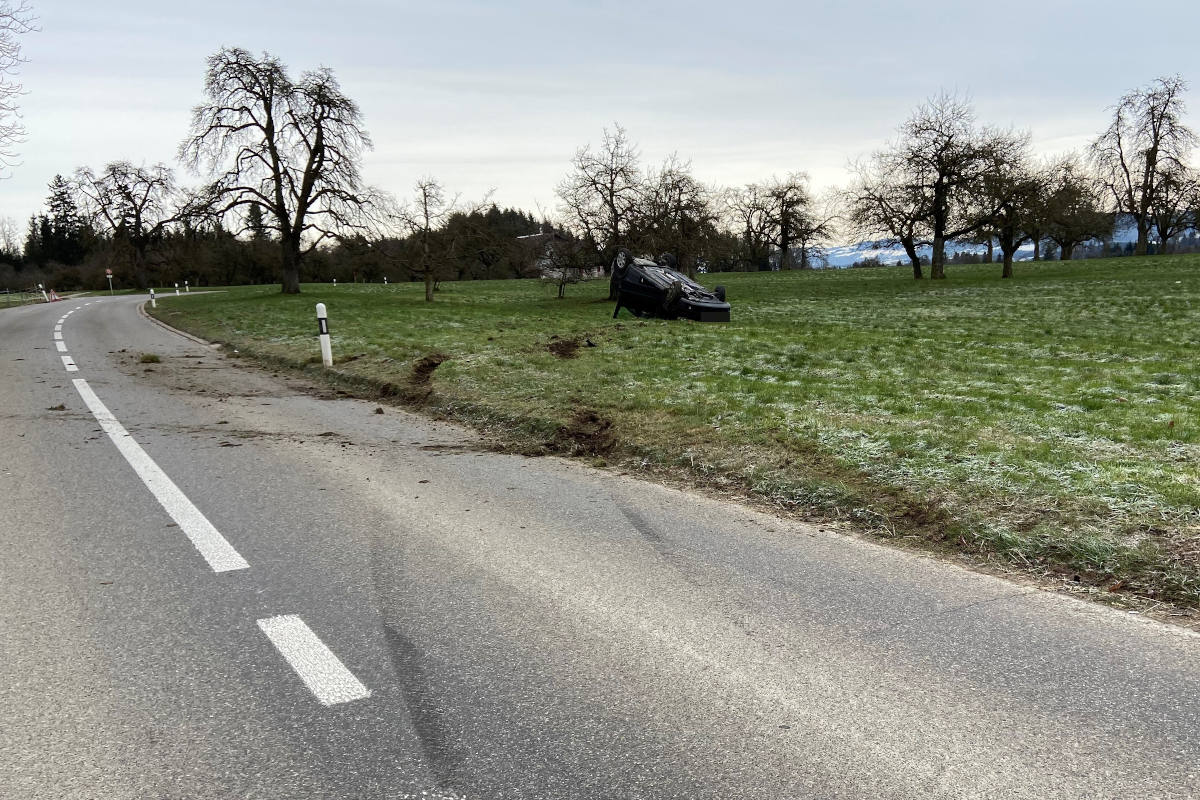 Mit Auto überschlagen bei Unfall in Bernhausen (Bildquelle: Kantonspolizei Thurgau)