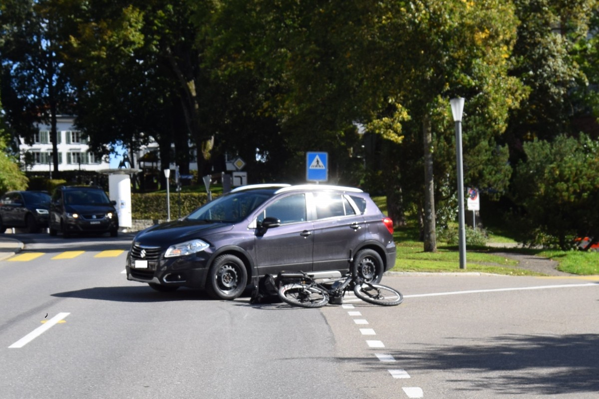 Sachschaden ist am Donnerstag, 30. September 2021, bei einer Kollision zwischen einem E-Bike und einem Personenwagen in Heiden entstanden.