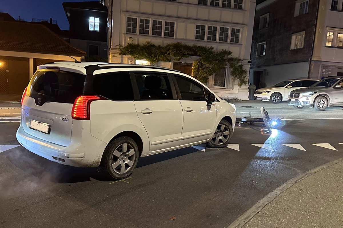Die 57-jährige Zweiradfahrerin kam zu Fall und erlitt dadurch leichte Verletzungen. Sie suchte nach der Unfallaufnahme selbständig einen Arzt auf. Am E-Bike und am Auto entstand Sachschaden von über tausend Franken.