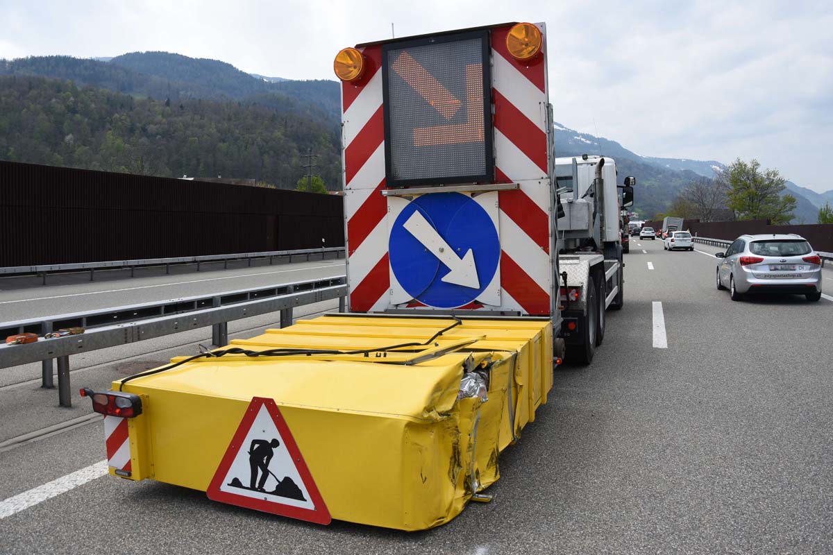 Dabei streifte er den genannten Anpralldämpfer des Nationalstrassenunterhaltdienstes und kollidierte in einen weiteren Lieferwagen, der korrekt auf dem Normalstreifen fuhr.