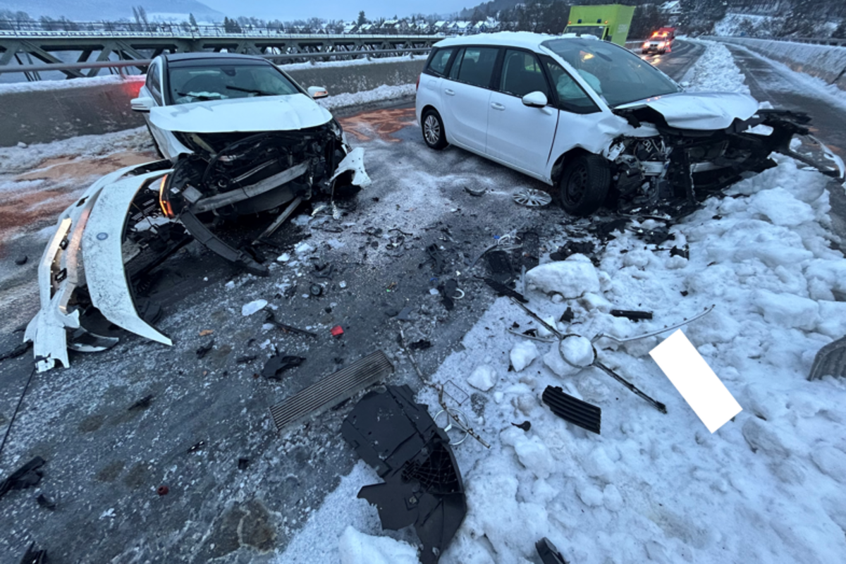 Am Dienstagmorgen (05.12.2023) ereignete sich auf der Rheinbrücke bei Hemishofen eine Kollision zwischen zwei Autos. Dabei verletzten sich die Unfallbeteiligten. An den beiden Unfallautos entstand Totalschaden.
