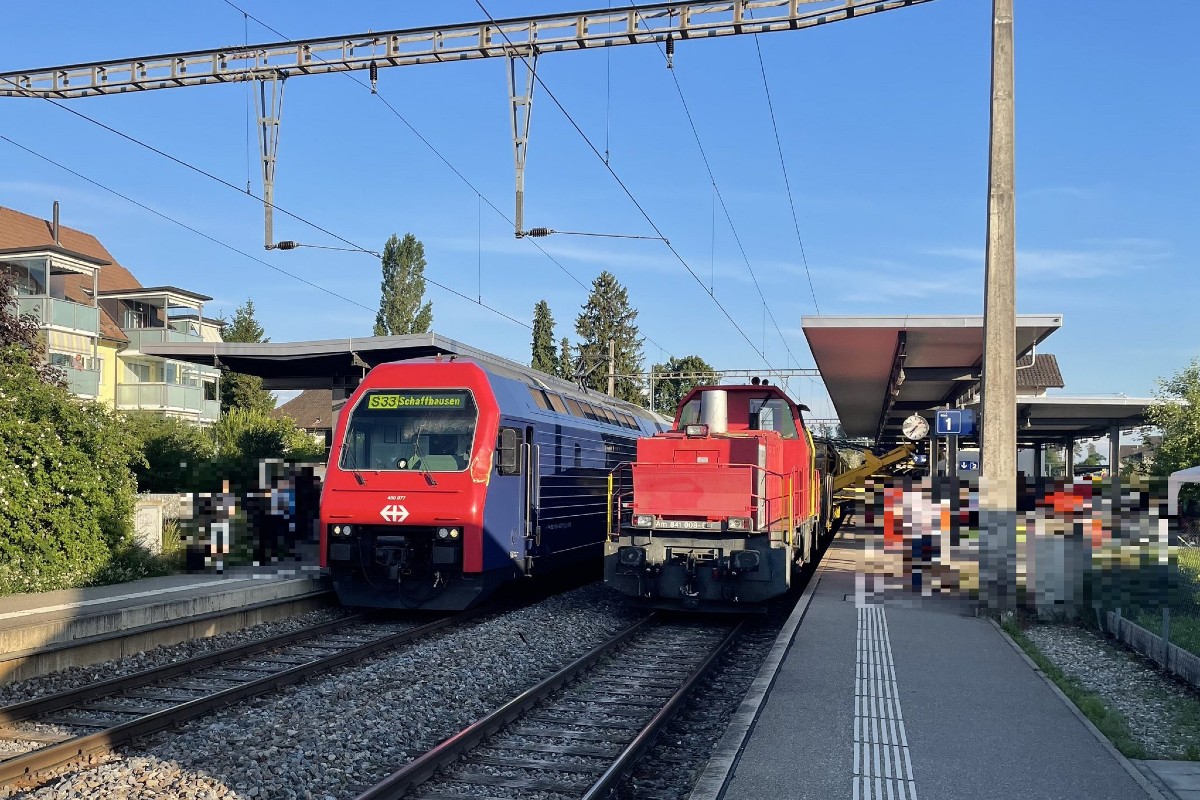 Bei einer Kollision eines Personenzuges mit einem Element eines Bauzuges ist am Donnerstagabend (2.6.2022) im Bahnhof Henggart Sachschaden in noch unbekannter Höhe entstanden. Personen wurden keine verletzt.