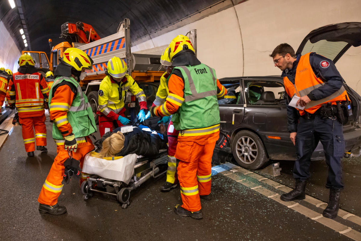 Stans, des Rettungsdienstes Zentralschweiz und des Unterhaltsdienstes der Nationalstrassen zentras im Einsatz. Nebst der Einsatzführung und des Patientenwegs wurden die Einsatzpläne des Loppertunnels, die Zusammenarbeit, die Kommunikation und die Schnittstellen der Ereignisdienste überprüft.