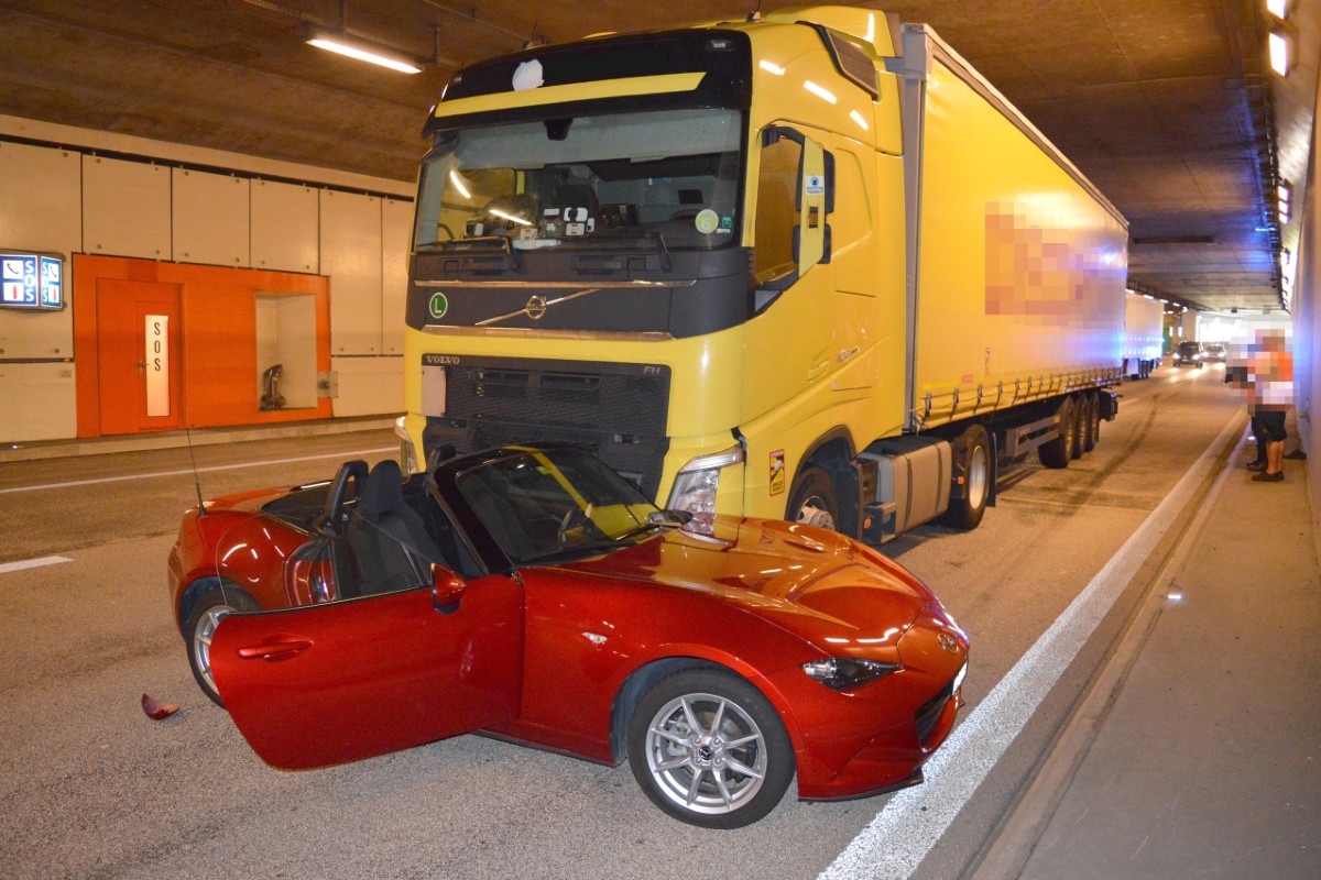 Am Montag, 03.05.2021, zirka 11:00 Uhr, hat sich auf der Autobahn A2 im Kirchenwaldtunnel Richtung Süden ein Verkehrsunfall ereignet. Verletzt wurde niemand, der Sachschaden ist gross.