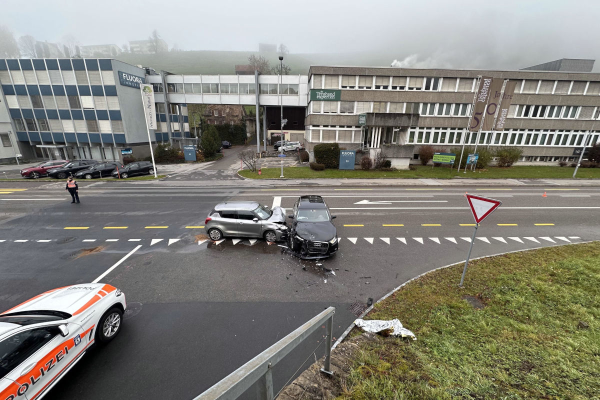 Am Montag, 10. November 2025, kam es in Herisau zu einem Unfall zwischen zwei Autos. Ein 36-jähriger Automobilist wurde verletzt ins Spital gebracht.