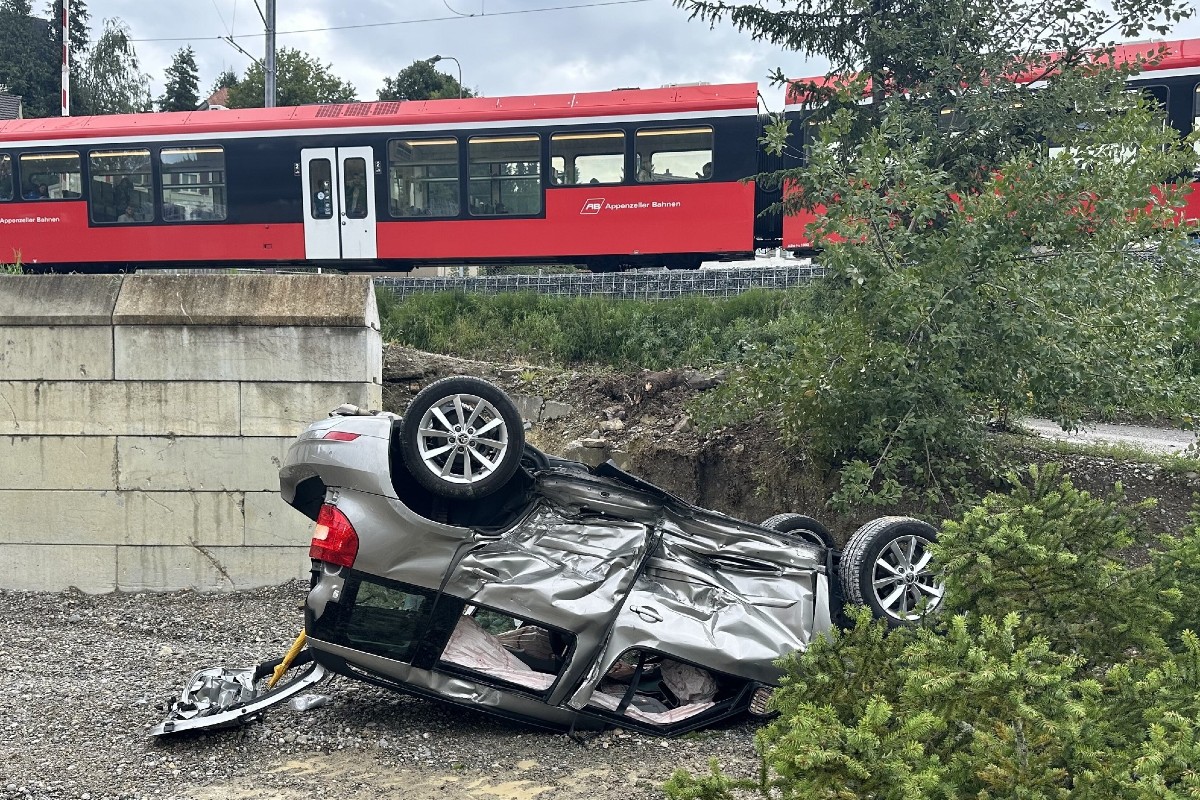 Eine 82-jährige Lenkerin fuhr um 11.00 Uhr von Zürich kommend mit ihrem Personenwagen auf der Industriestrasse in Richtung Alpsteinstrasse. Aus bisher unbekannten Gründen fuhr sie trotz bereits blinkendem Wechselblinklichtsignal auf den Bahnübergang. Da sich die Schranken zwischenzeitlich gesenkt hatten, konnte sie ihre Fahrt nicht mehr weiter fortsetzen. In der Folge wurde der Personenwagen von der aus Richtung Bahnhof Herisau heranfahrenden Komposition der Appenzeller Bahnen erfasst und weggeschleudert. Schliesslich kam das Personenwagen in rund 25 m Entfernung vom Bahnübergang und in total beschädigtem Zustand zum Stillstand.