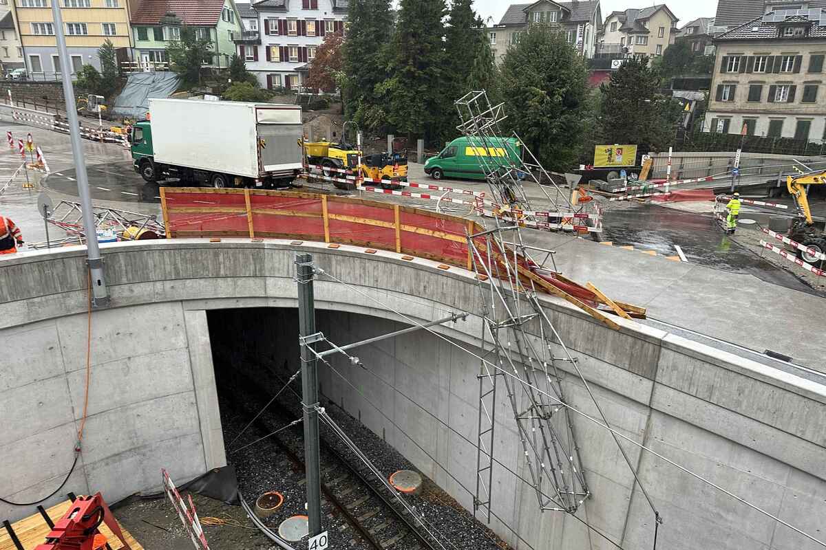 Dank der schnellen und guten Zusammenarbeit des Reparatur-Teams der Appenzeller Bahnen und der vor Ort tätigen Bauunternehmung konnten die Fahrbahnen schnell frei geräumt werden.