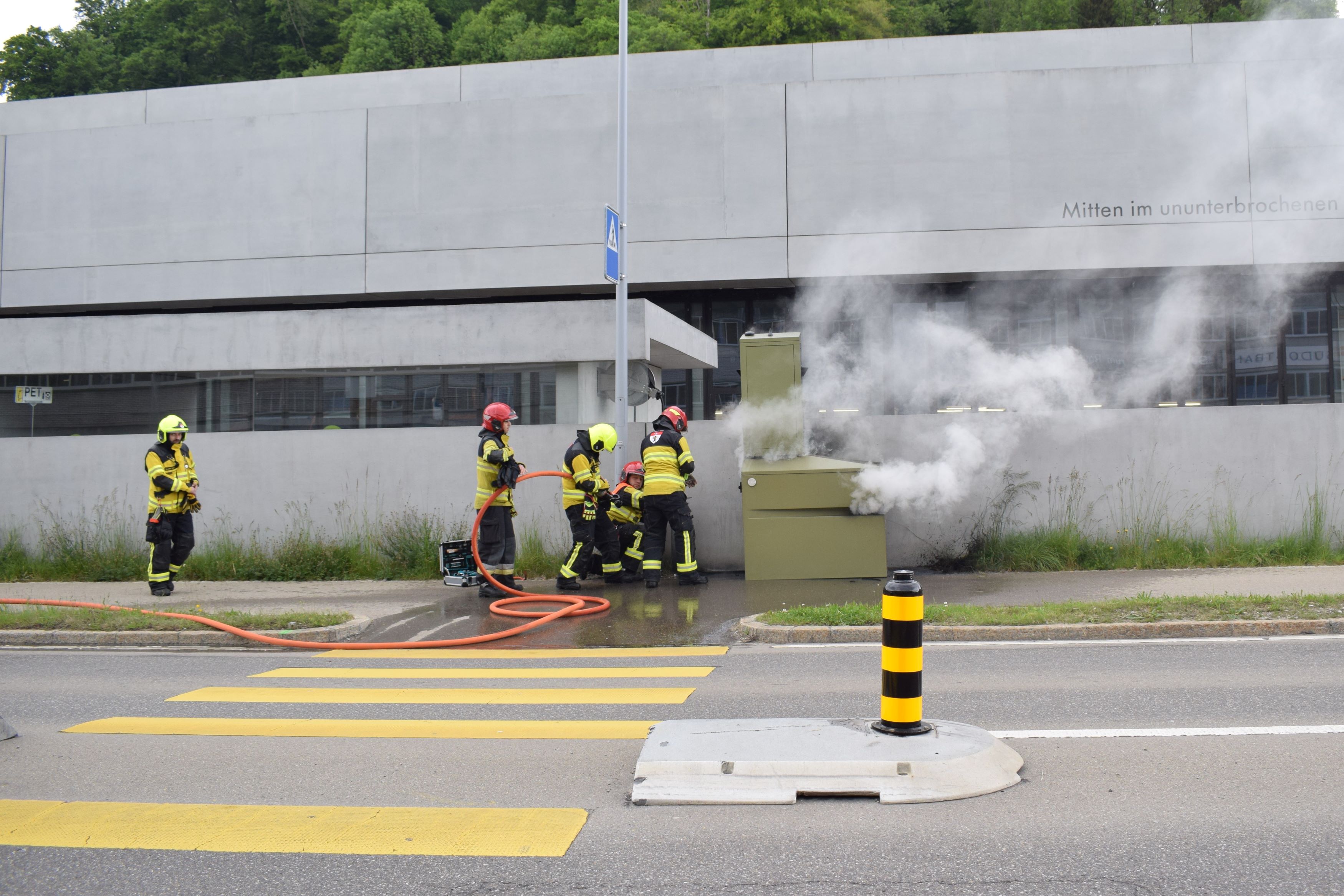 Kurz vor 16:30 Uhr ging bei der Kantonalen Notrufzentrale die Meldung ein, dass an der St. Gallerstrasse eine semistationäre Geschwindigkeitsmessanlage brenne. Beim Eintreffen der ersten Einsatzkräfte stellten diese eine starke Rauchentwicklung aus dem Gerät fest. Die sofort alarmierte Feuerwehr Herisau konnte den Brand rasch unter Kontrolle bringen und schliesslich löschen. Der Schaden an der Anlage beläuft sich auf rund 200'000 Franken.
