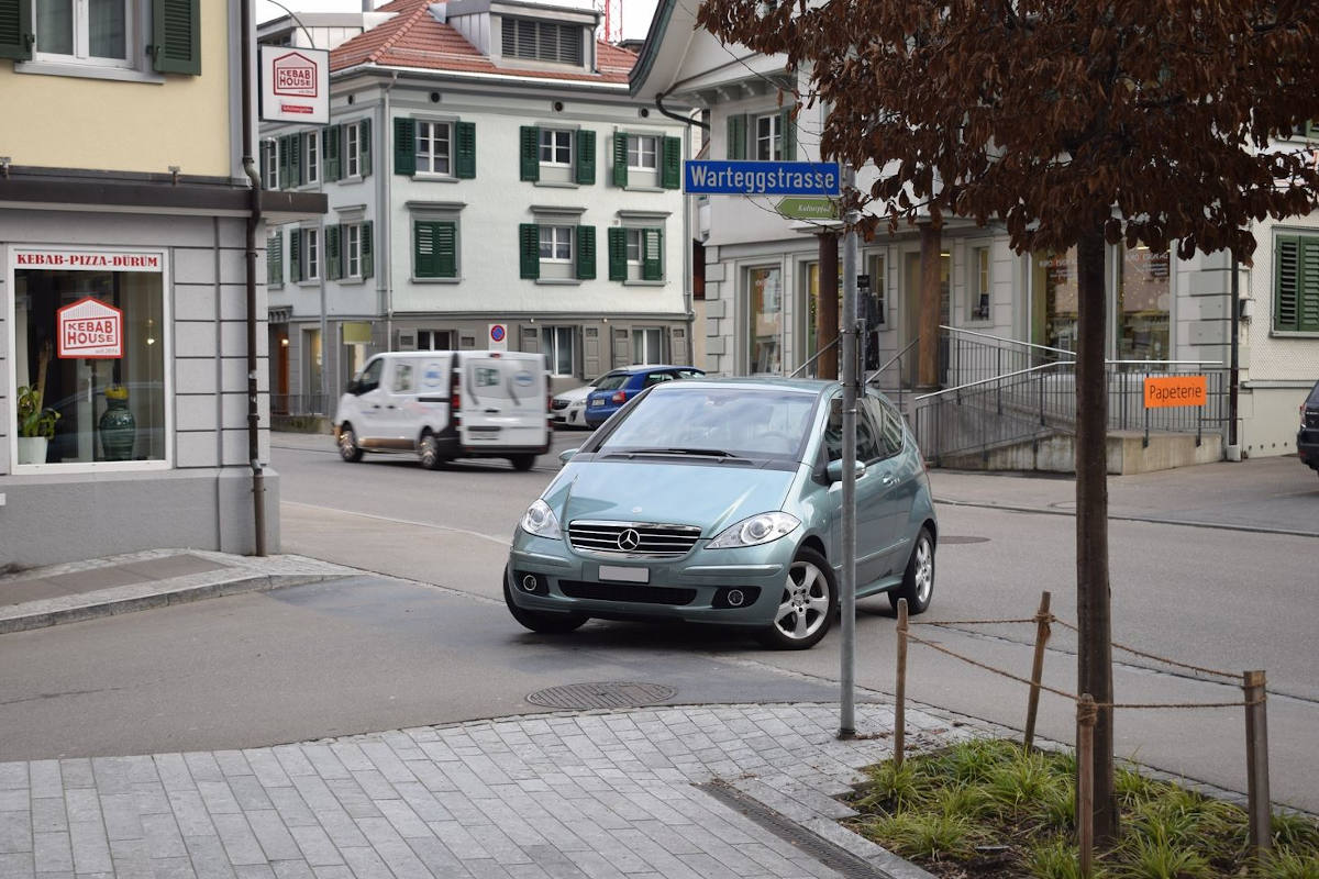 Kurz nach 15.15 Uhr fuhr ein 70-jähriger Mann mit seinem Personenwagen auf der Kasernenstrasse in Richtung Dorfzentrum. Höhe Haus Nr. 11 bog er rechts in die Warteggstrasse ab. Dabei erfasste das Fahrzeug eine 76-jährige Fussgängerin, welche auf dem Trottoir unterwegs war.