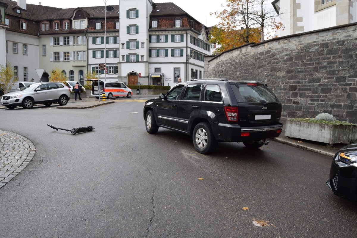 Kurz vor 12.00 Uhr fuhr gestern ein 18-jähriger Mann mit einem Elektro-Scooter von der Kasernenstrasse in den Kreisel beim Obstmarkt in Herisau ein und beabsichtigte in Richtung Platz zu fahren.