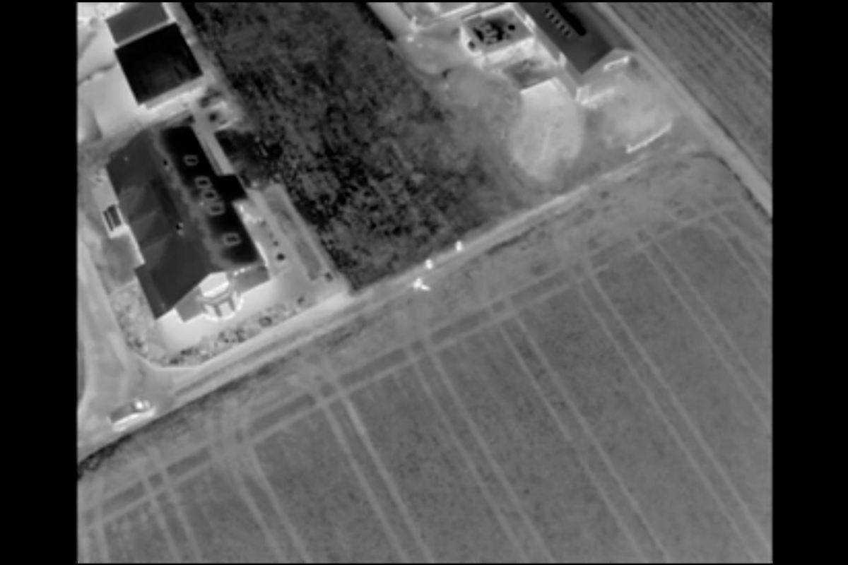 Mit einer Drohne und einer Wärmebildkamera konnte der mutmassliche Täter aufgespürt werden. (Bildquelle: Kantonspolizei Bern)