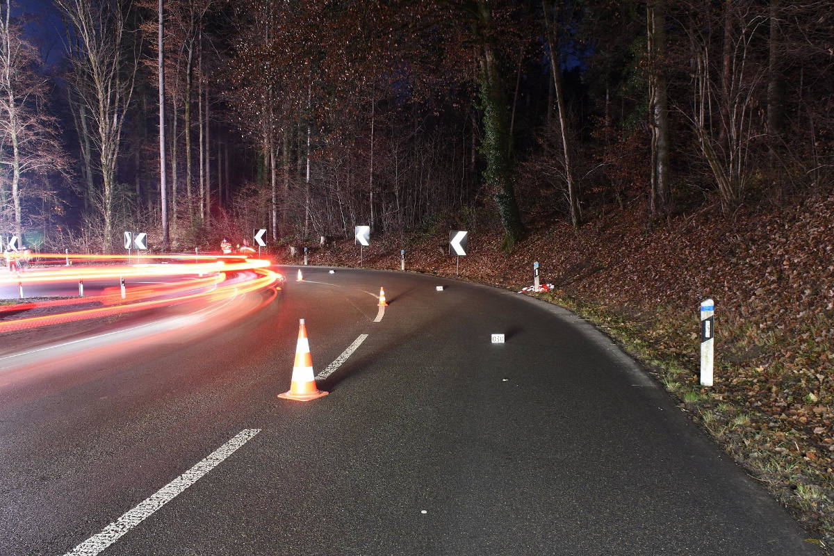 Höchstwahrscheinlich verunfallte der Mann vor mehreren Wochen mit seinem Motorrad auf der kurvenreichen Strecke und blieb im Wald liegen. Beim Verstorbenen handelt es sich mutmasslich um einen seit Anfang Oktober vermissten