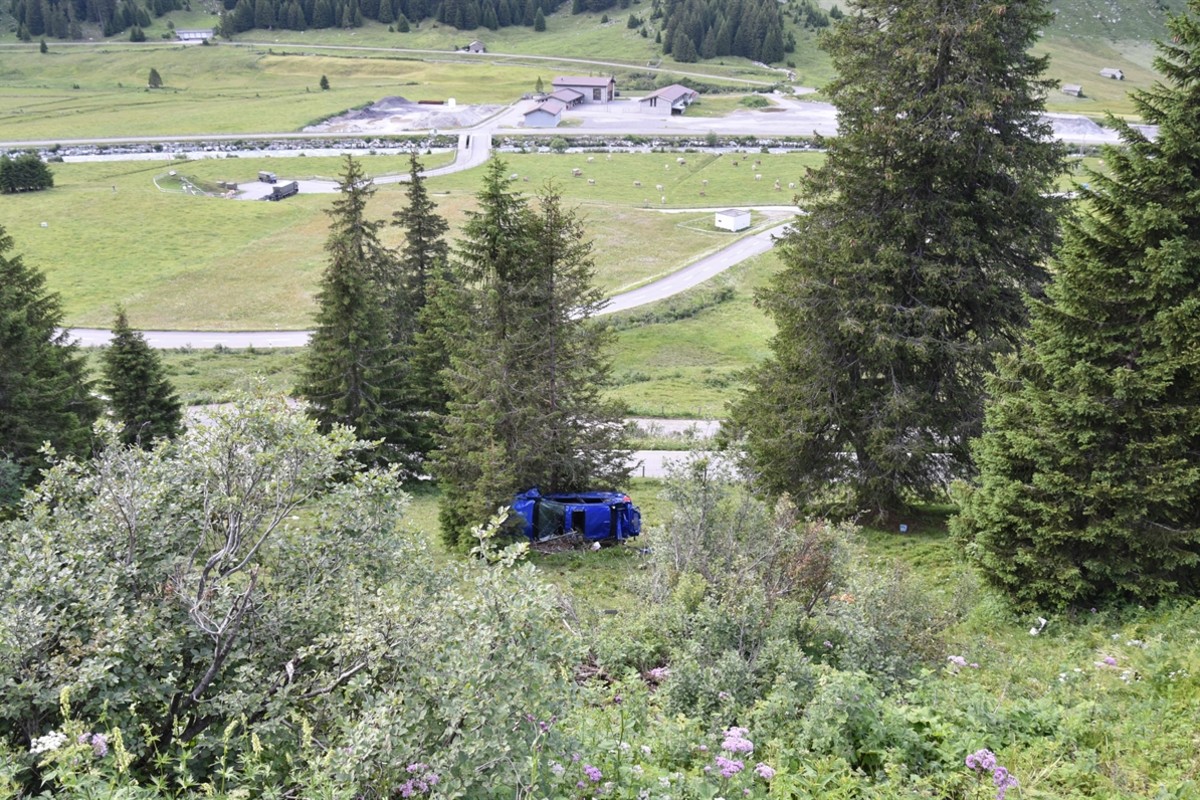 Die beiden Insassen konnten sich selbständig aus dem Fahrzeug befreien und hoch auf die Passstrasse laufen. Ein Ambulanzteam aus Thusis und der örtliche Notarzt untersuchten die beiden Verunfallten.