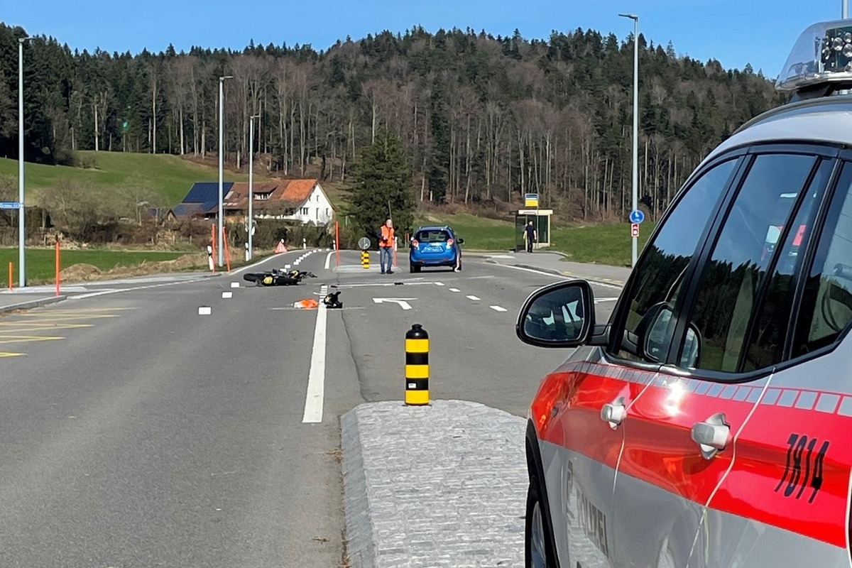 Bei einer Kollision zwischen einem Auto und einem Motorrad in Hittnau wurde am Samstagmittag (02.03.2024) der Zweiradlenker schwer verletzt.