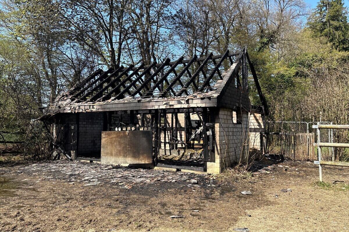 Am Samstag, 11. April 2026, wurde in Hochwald ein leerstehender Pferdestall durch ein Feuer komplett zerstört. Verletzt wurde niemand.