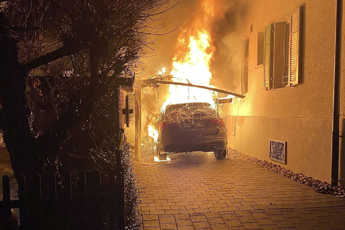 Das betreffende Fahrzeug war in einem Fahrzeugunterstand direkt an der Hausmauer parkiert. Durch die Flammen und die entstandene Hitze wurden auch diverse Fenster und die Fassade beschädigt.