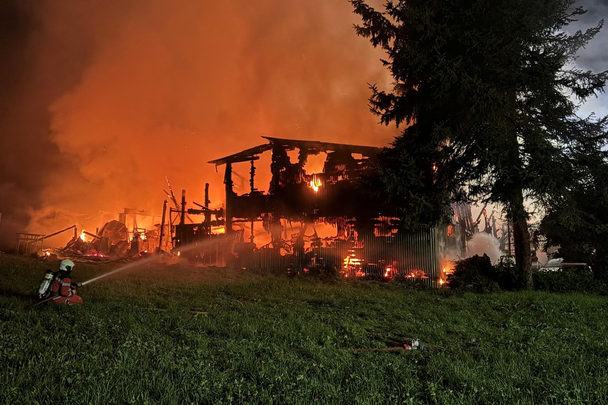 Gegen 21.15 Uhr wurden Polizei und Feuerwehr wegen eines Brandes auf einem Gewerbeareal alarmiert. Beim Eintreffen der sofort ausgerückten Einsatzkräfte stand eine Lagerhalle in Vollbrand und das Feuer hatte bereits auf eine Scheune übergegriffen.