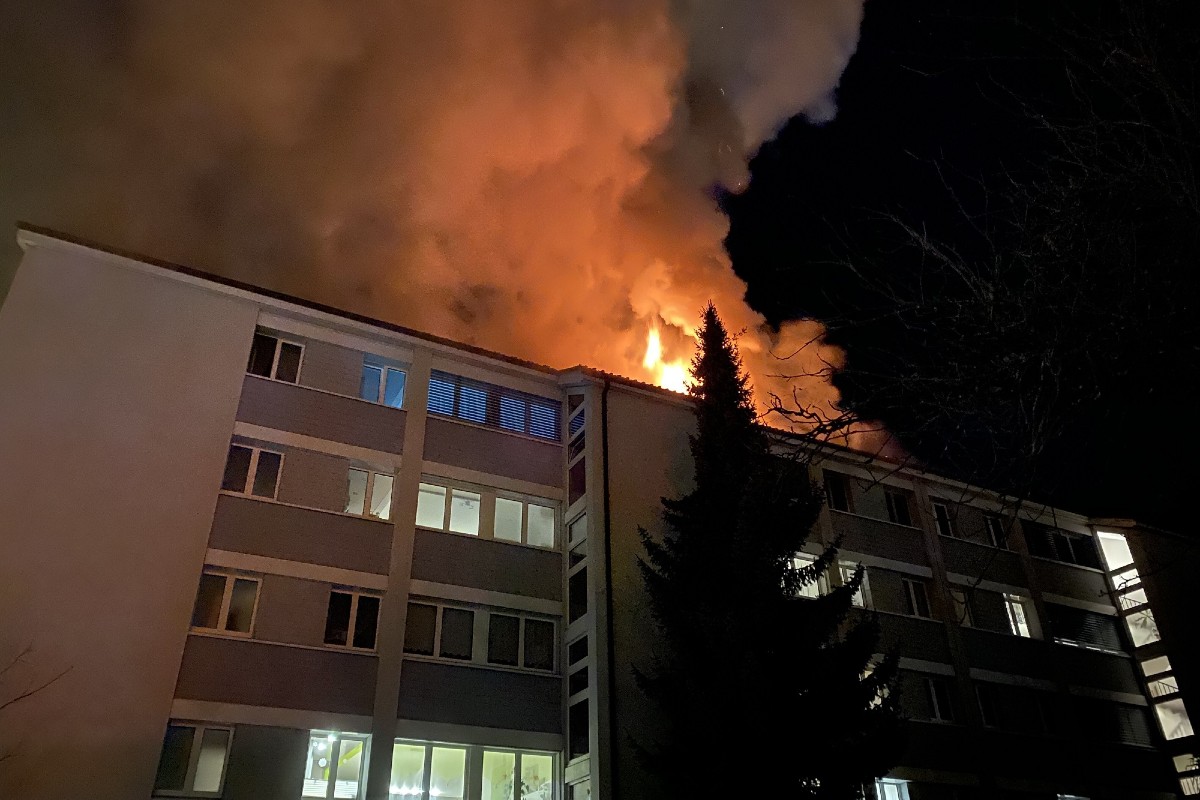 Beim Brand des Dachstocks eines Mehrfamilienhauses ist am Mittwochabend (09.02.2022) in Horgen ein Sachschaden von mehreren hunderttausend Franken entstanden. Verletzt wurde niemand.