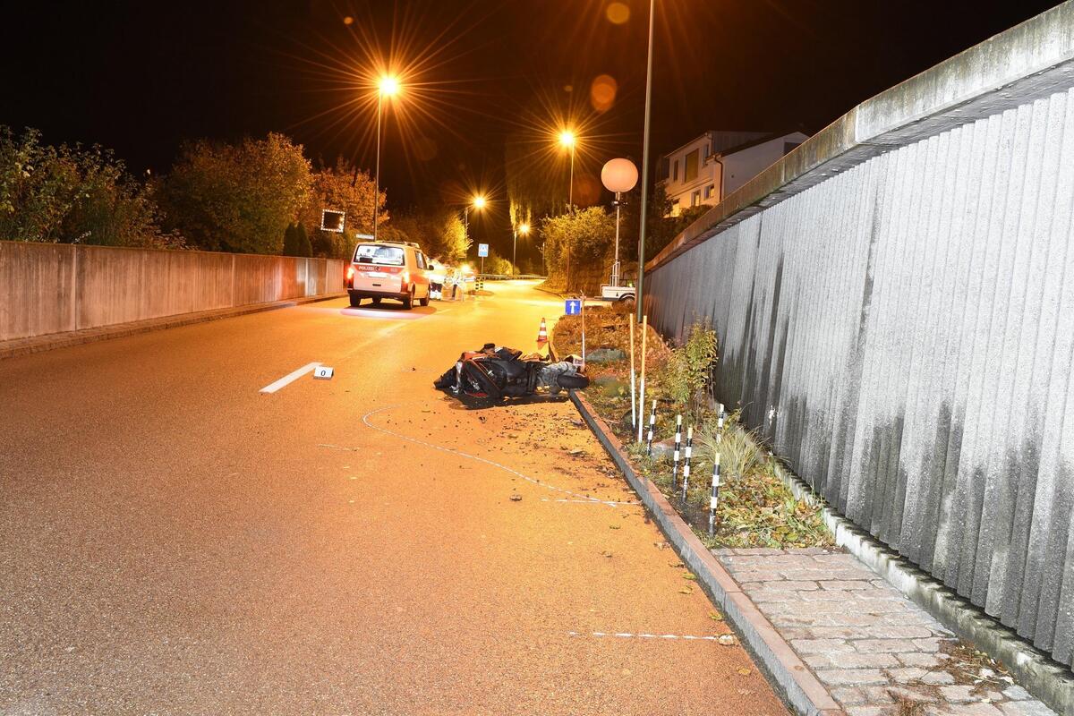 Bei einem Selbstunfall eines Rollerlenkers wurde dieser in der Nacht auf Sonntag (12.11.2023) in Horgen mittelschwer verletzt. Die Zugerstrasse war kurzzeitig gesperrt.