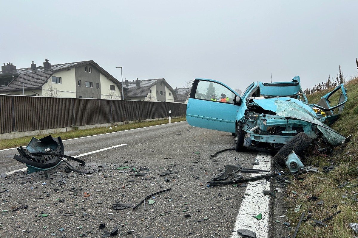 Am Auto entstand Totalschaden. Auch der Lastwagen wurde stark beschädigt. Der gesamte
