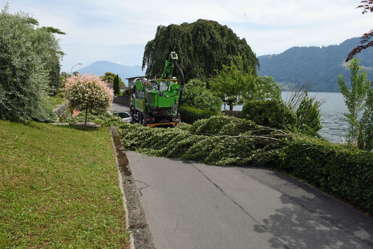 Am gestrigen Montag, 28. Juni 2021, 11:40 Uhr, fanden auf der Seestrasse in der Gemeinde Horw zwischen Winkel und Kastanienbaum Reinigungsarbeiten an den Strassenschächten statt. Bei diesen Arbeiten kollidierte der Ausleger des Reinigungslastwagens mit einem Stahlseil, welches auf einer Höhe von knapp sechs Metern am Stamm einer Pappel angebracht war. Dadurch brach der Stamm der Pappel. Diese fiel auf ein in Richtung Winkel fahrendes Auto sowie auf eine Radfahrerin. Es entstand ein Sachschaden in der Höhe von rund 20'000 Franken.