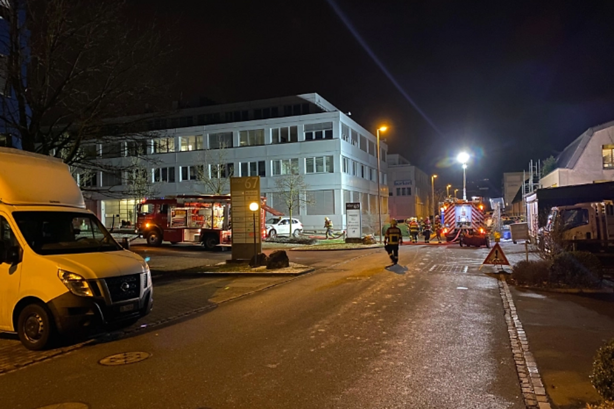 In einem Bürogebäude brach ein Glimmbrand aus. Die Flammen konnten rasch gelöscht werden. Verletzt wurde niemand.