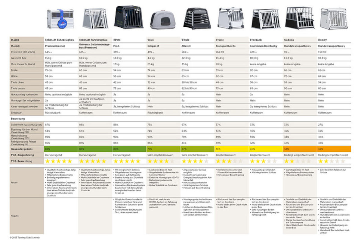 Der Test verdeutlicht: Wer beim Kauf einer Hundebox spart, geht häufig Kompromisse bei der Sicherheit ein – genau dort, wo man es am wenigsten sollte. Der TCS empfiehlt, auf geprüfte Stabilität, passgenaue Grösse und eine fachgerechte Montage zu achten. Boxen für die Rücksitzbank können dabei eine gleichwertige Alternative zum Kofferraum darstellen. Zubehör wie Bodenmatten, Schlösser oder Befestigungselemente steigern nicht nur den Komfort, sondern auch die Sicherheit.