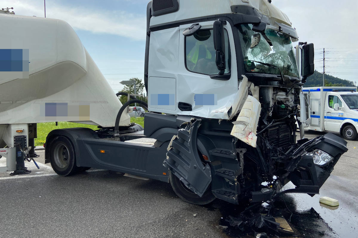 Am Freitag, 13. August 2021, kam es in Hunzenschwil, kurz nach 10 Uhr, auf Höher des Autobahnanschluss Aarau-Ost zu einer Kollision zweier Lastwagen. Der eine Lenker musste leicht verletzt ins Spital gebracht werden. Wie sich herausstellte, missachtet ein 66-jähriger Bulgar mit seinem Lastwagen, beim Verlassen der Autobahn, den Vortritt gegenüber einem korrekt fahrenden 30-jährigen Schweizer Lastwagenchauffeur. Dabei kam es zur seitlichen Frontalkollision der beiden.