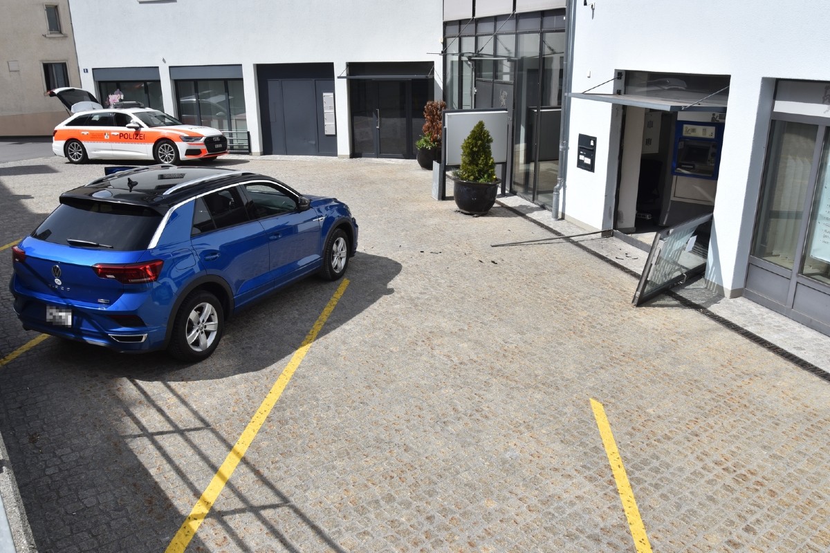 Aufgrund des Mundalkoholgeruches beim Automobilisten wurde eine Atemluftprobe durchgeführt, welche positiv ausfiel. Die Kantonspolizei Graubünden nahm dem Mann den Führerausweis auf der Stelle ab. An Gebäude, Bankomat und Auto entstand erheblicher Sachschaden.