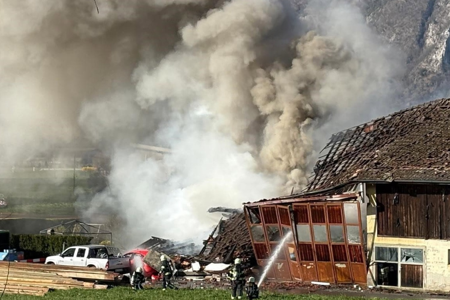 Kurz darauf kam es zu einer Explosion. Durch die Verpuffung wurde ein nahegelegenes Haus vollständig zerstört. Zum Zeitpunkt des Vorfalls war es unbewohnt.