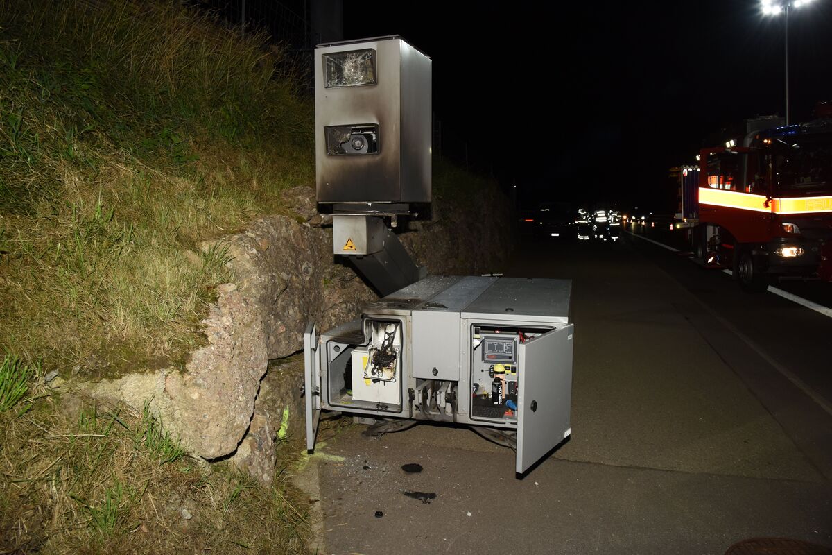 Kurz nach Mitternacht meldeten mehrere Personen der Einsatzzentrale der Kantonspolizei Schwyz, dass eine auf der Autobahn A4 in Immensee platzierte Geschwindigkeitsmessanlage brennt. Die sofort aufgebotene Stützpunkt Feuerwehr Küssnacht konnte zusammen mit der Polizeipatrouille vor Ort kein Feuer, jedoch die stark beschädigte Messanlage feststellen.