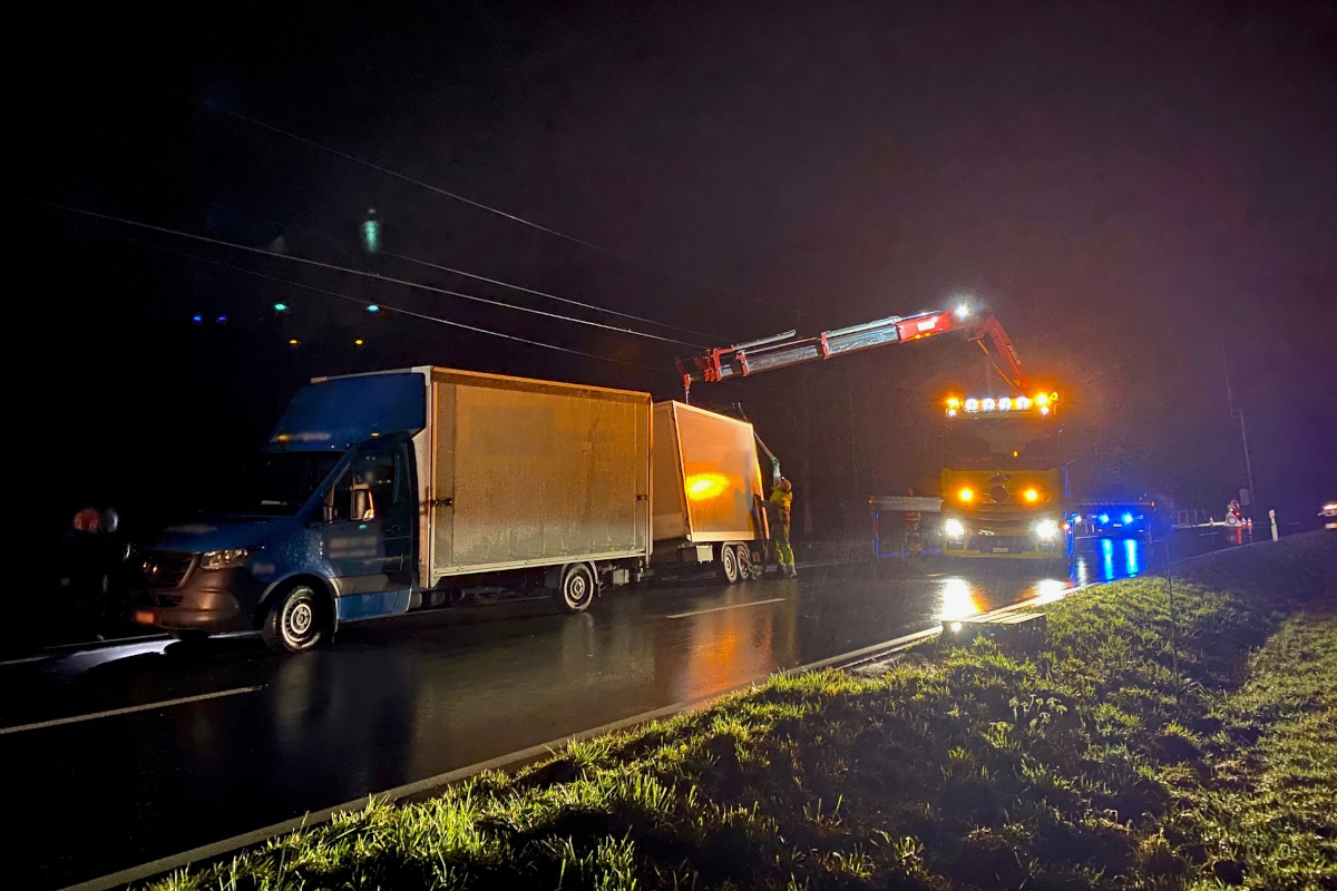Am Montag, 9. Januar 2023, wurde der Kantonspolizei Bern kurz vor 17.45 Uhr gemeldet, dass sich in Ins auf der Bielstrasse ein Verkehrsunfall ereignet habe, in den ein Lieferwagen mit Anhänger involviert sei.