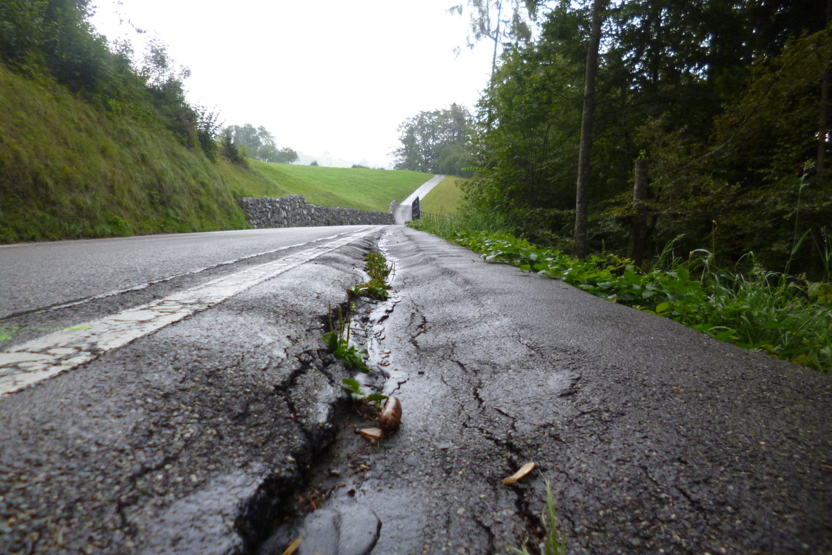 Auf zwei Abschnitten bei der Örtlichkeit Weid zwischen Speicher und Speicherschwendi ist die talseitige Böschung der Kantonsstrasse nicht stabil. Der Strassenrand senkt sich kontinuierlich. Die Bewegungen konnten mit einfachen Massnahmen nicht gestoppt werden. Jetzt sollen zwei mit Pfählen verankerte Stützriegel aus Beton die Stabilität der Verkehrsachse gewährleisten.