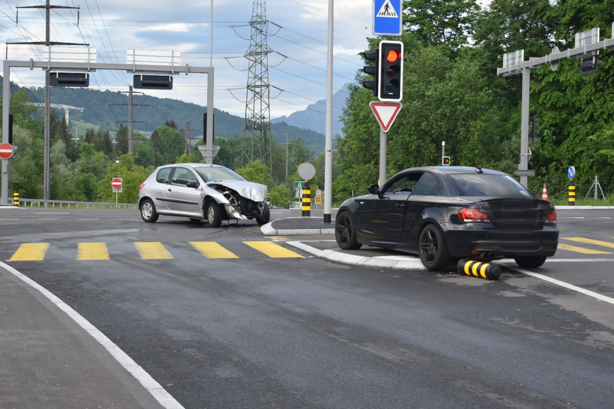 In Inwil LU kam es heute zu einem Verkehrsunfall, weil ein Autofahrer ein Rotlicht übersehen hat. (Bildquelle: Luzerner Polizei)