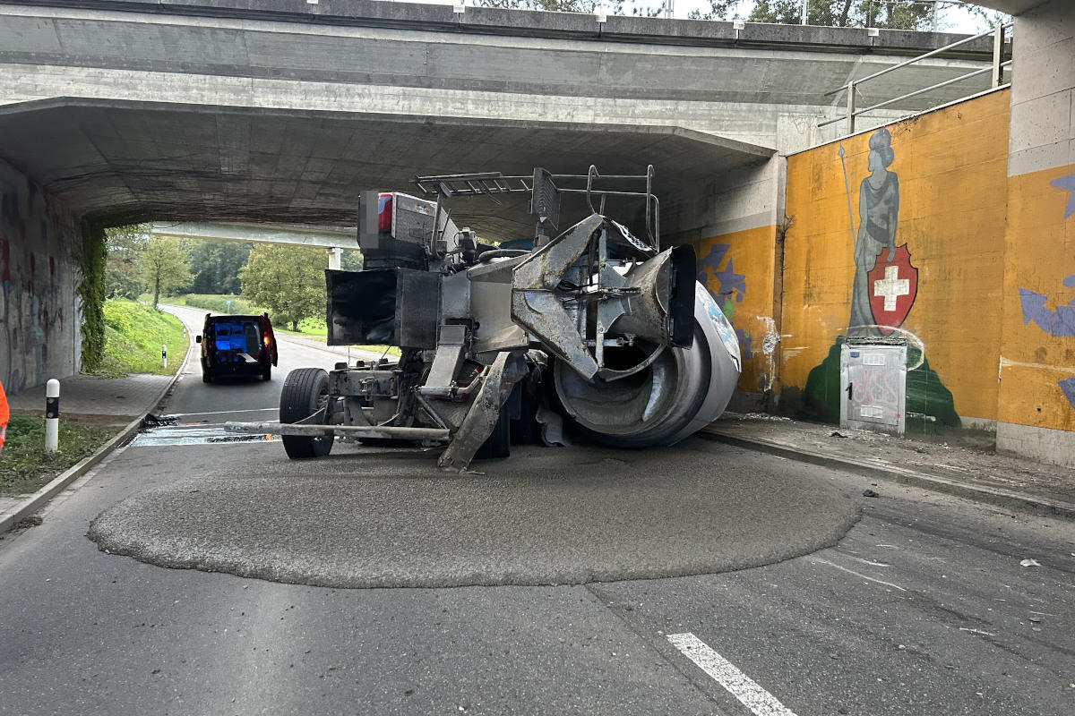 Ein Lastwagen (Betonmischer) verunfallte am Montagmorgen, 30. September 2024, kurz vor 07.00 Uhr, auf der Unterdorfstrasse in Kaisten. Der 62-jährige Chauffeur blieb unverletzt. Aufgrund des ausgelaufenen Inhalts der Mischtrommel sowie den aufwändigen Bergungs- und Räumungsarbeiten musste die Strasse während mehrerer Stunden gesperrt werden. Die Feuerwehr leitete dafür den Verkehr um.