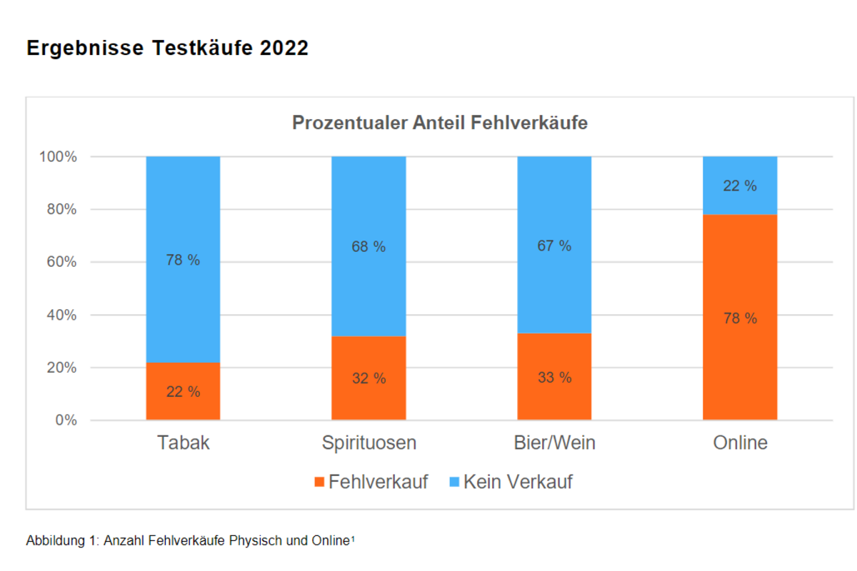 Die Auswertung der Testkäufe von Alkohol im Online-Handel zeigt, dass hier Handlungsbedarf besteht und die bestehenden Tools zur Altersidentifikation nicht ausreichen, um den Jugendschutz zu gewährleisten: Nur bei zwei der im Kanton Aargau durchgeführten neun Testkäufe wurden die Jugendschutzbestimmungen vollständig eingehalten.
