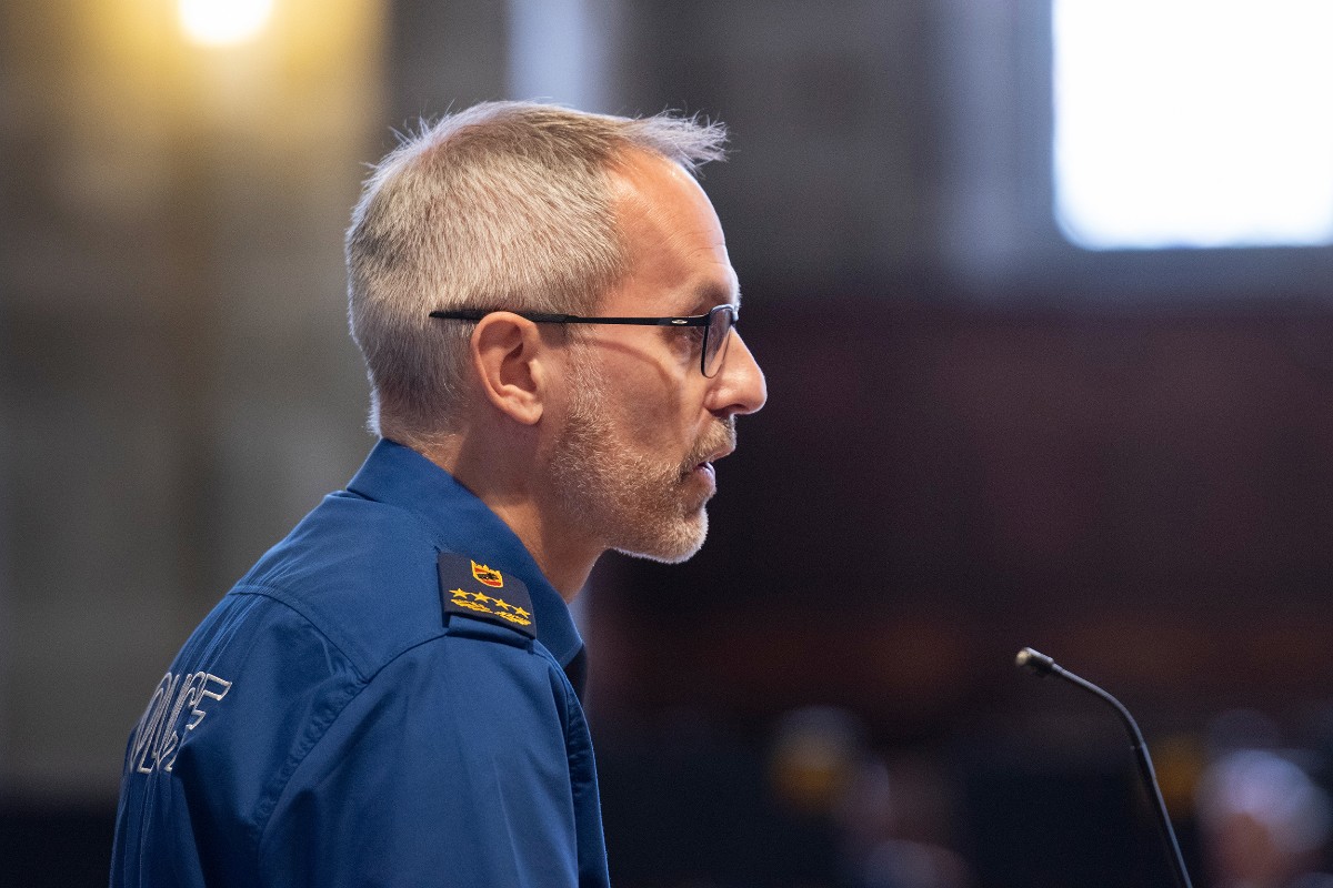 Im Rahmen einer feierlichen Zeremonie im Berner Münster haben Regierungsrat Philippe Müller und Polizeikommandant Christian Brenzikofer am Dienstagvormittag, 29. März 2022, die neuen Mitarbeitenden der Kantonspolizei Bern vereidigt. Insgesamt haben 92 Korpsangehörige ihren Eid oder ihr Gelübde abgelegt. So wurden die 28 Frauen und 64 Männer mit einem Handschlag über die Standarte symbolisch in das Korps der Kantonspolizei Bern aufgenommen.