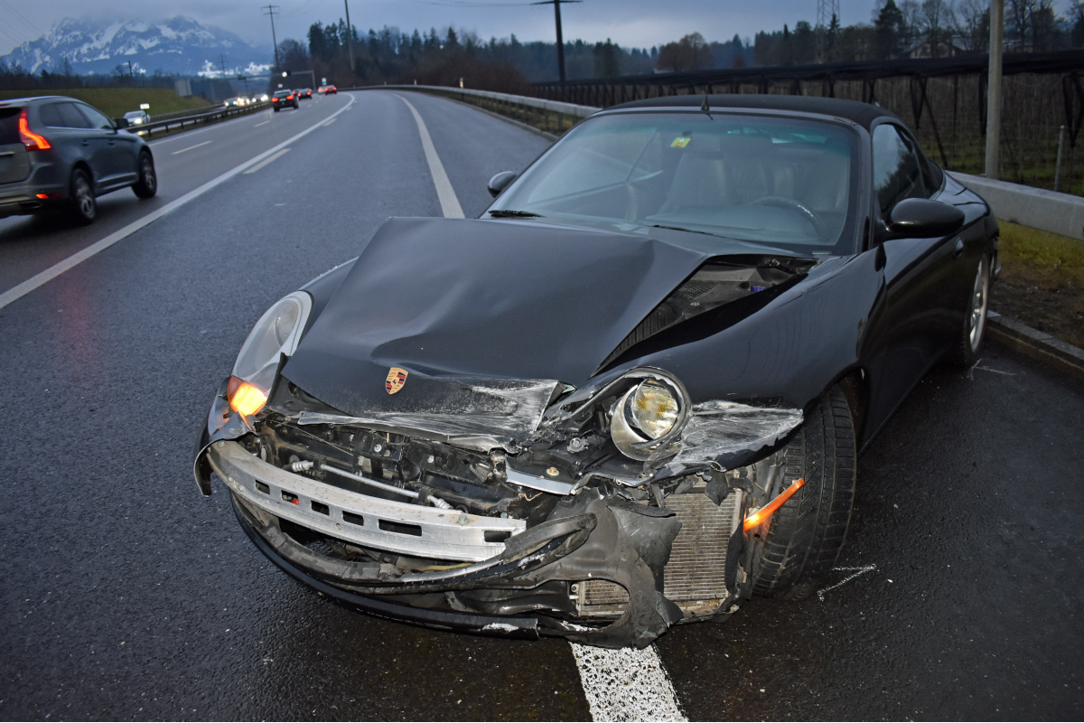 Beim Unfall in Buchrain LU erlitt der Porsche Totalschaden. (Bildquelle: Luzerner Polizei)