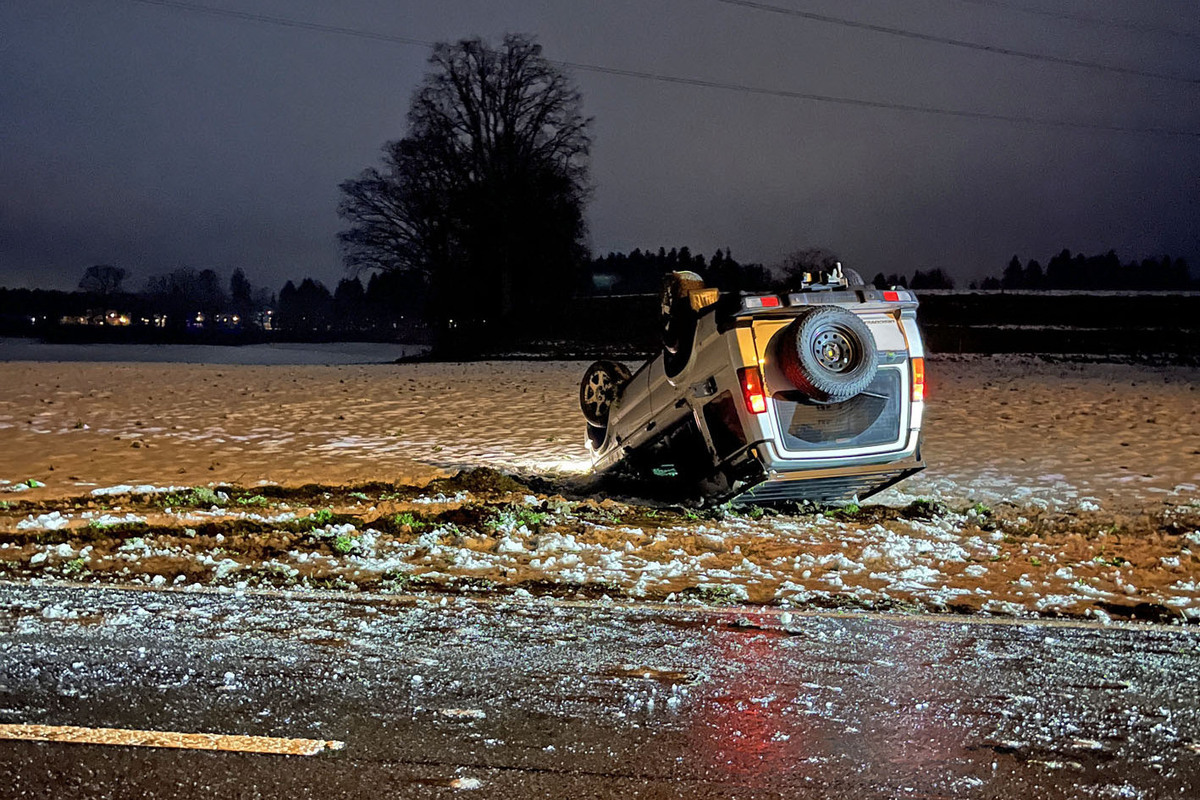 Am Montag (22. Januar 2024, ca. 22:00 Uhr) fuhr ein Autofahrer auf der Mettlenstrasse von Emmen in Richtung Inwil. Aus noch ungeklärten Gründen geriet das Auto auf der mutmasslich vereisten Strasse ins Schleudern, rutschte ins Wiesland und kippte dann aufs Dach. Verletzt wurde beim Unfall niemand. Der Sachschaden beläuft sich auf ca. 15'000 Franken.