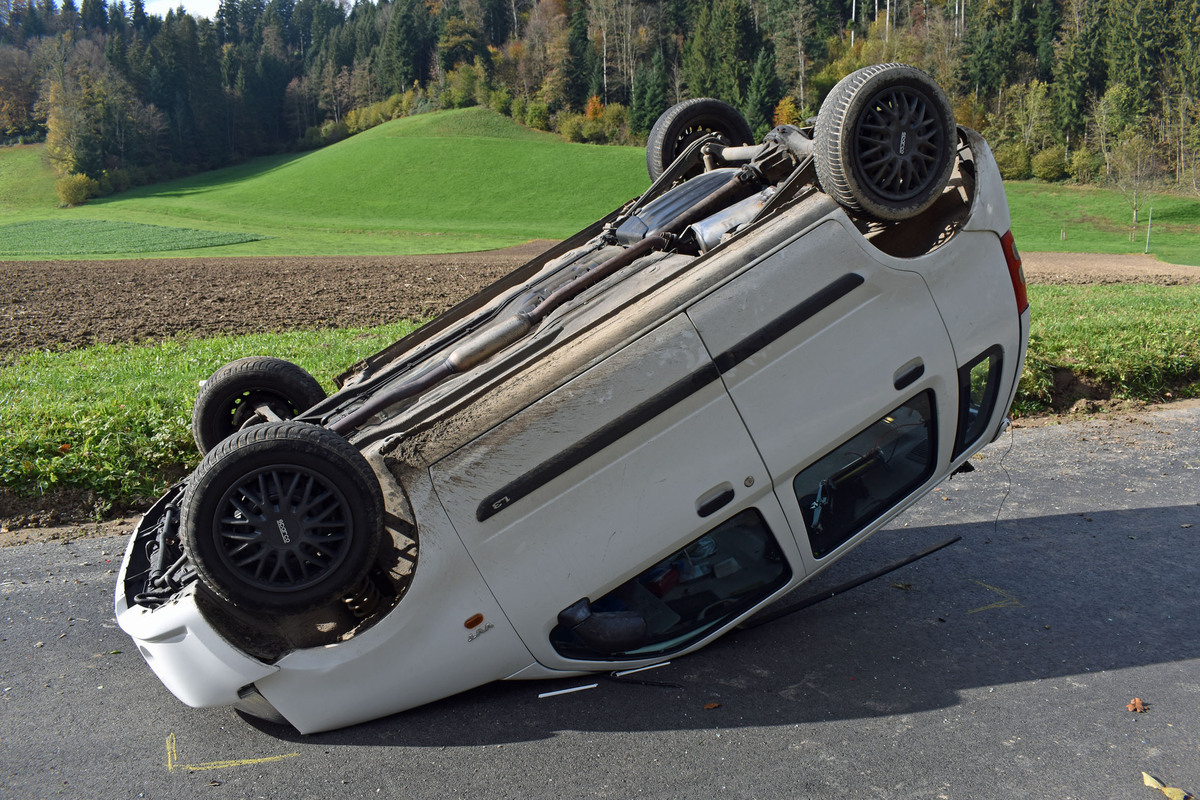Willisau: Auto kollidiert mit Böschung und kippt aufs Dach