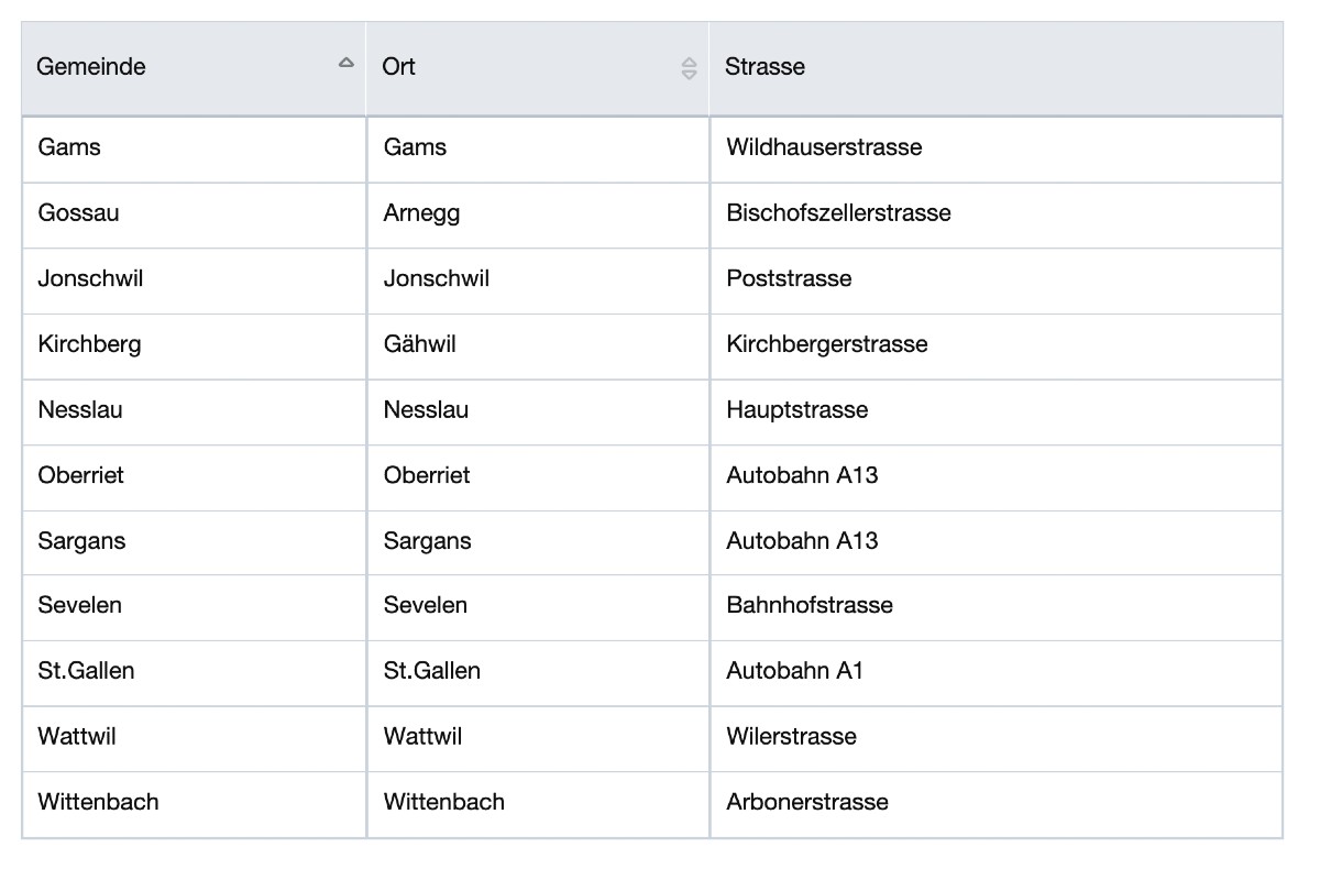 Die kantonspolizei st.gallen veröffentlicht als Massnahme zur Erhöhung der Verkehrssicherheit die Standorte der semistationären Messanlagen im Kanton St.Gallen (ohne Stadt St.Gallen). Die Aktualität der Liste wird nicht garantiert. Es kann sein, dass einzelne Standorte zwischen den Publikationsdaten versetzt werden.