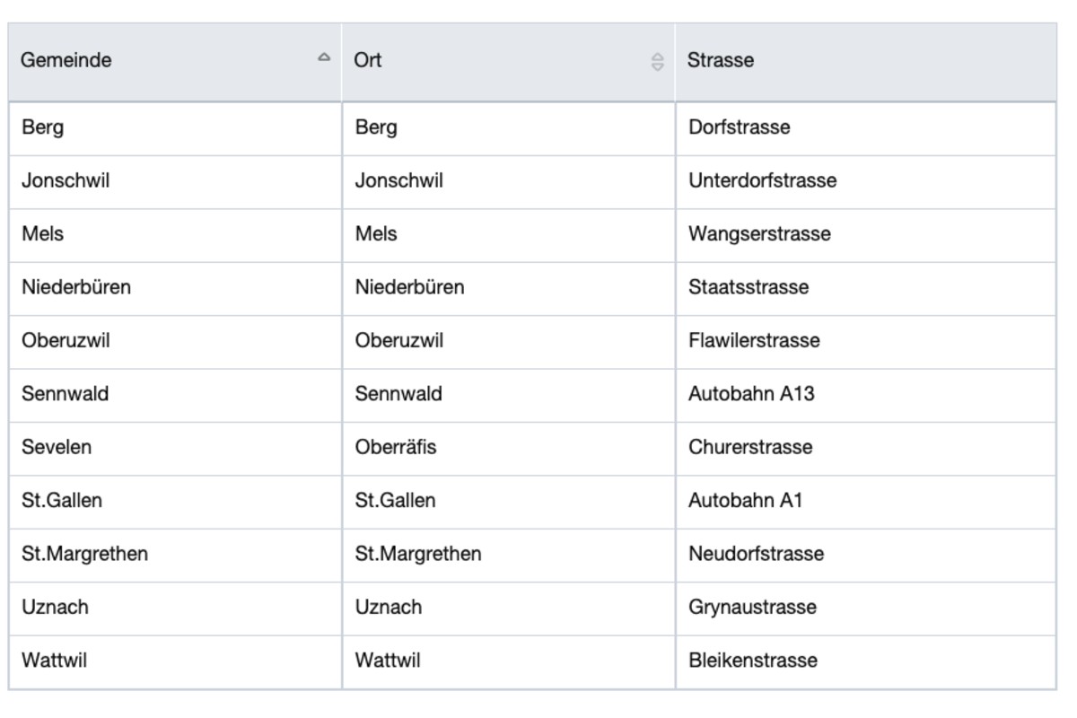 Anbei die Liste der Geschwindigkeitskontrollen der Kapo St.Gallen. An diesen Stellen wird die Geschwindigkeit gemessen.