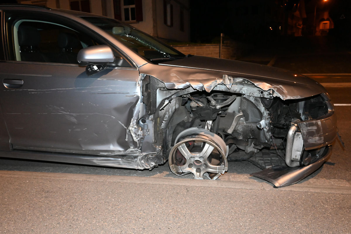 Ohne sich um den Unfall zu kümmern, setzte der 35-Jährige seine Fahrt fort, wobei das Auto diverse Fahrzeugteile verlor und der mittlerweile leere Pneu durch die Felge die Strasse zerkratzte.