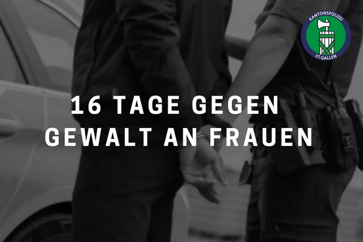 Tausende Frauen werden jährlich Opfer von häuslicher Gewalt, Stalking oder psychischer Gewalt. Die Aktionszeit «16 Tage gegen Gewalt an Frauen» macht auf verschiedene Themen in diesem Zusammenhang aufmerksam. Zahlreiche Institutionen beteiligen sich an der Aktion, auch die Kantonspolizei St.Gallen.