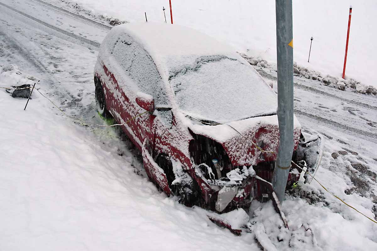Wolfertswil und Eggersriet gegen eine Infotafel und eine Leitplanke rutschten.