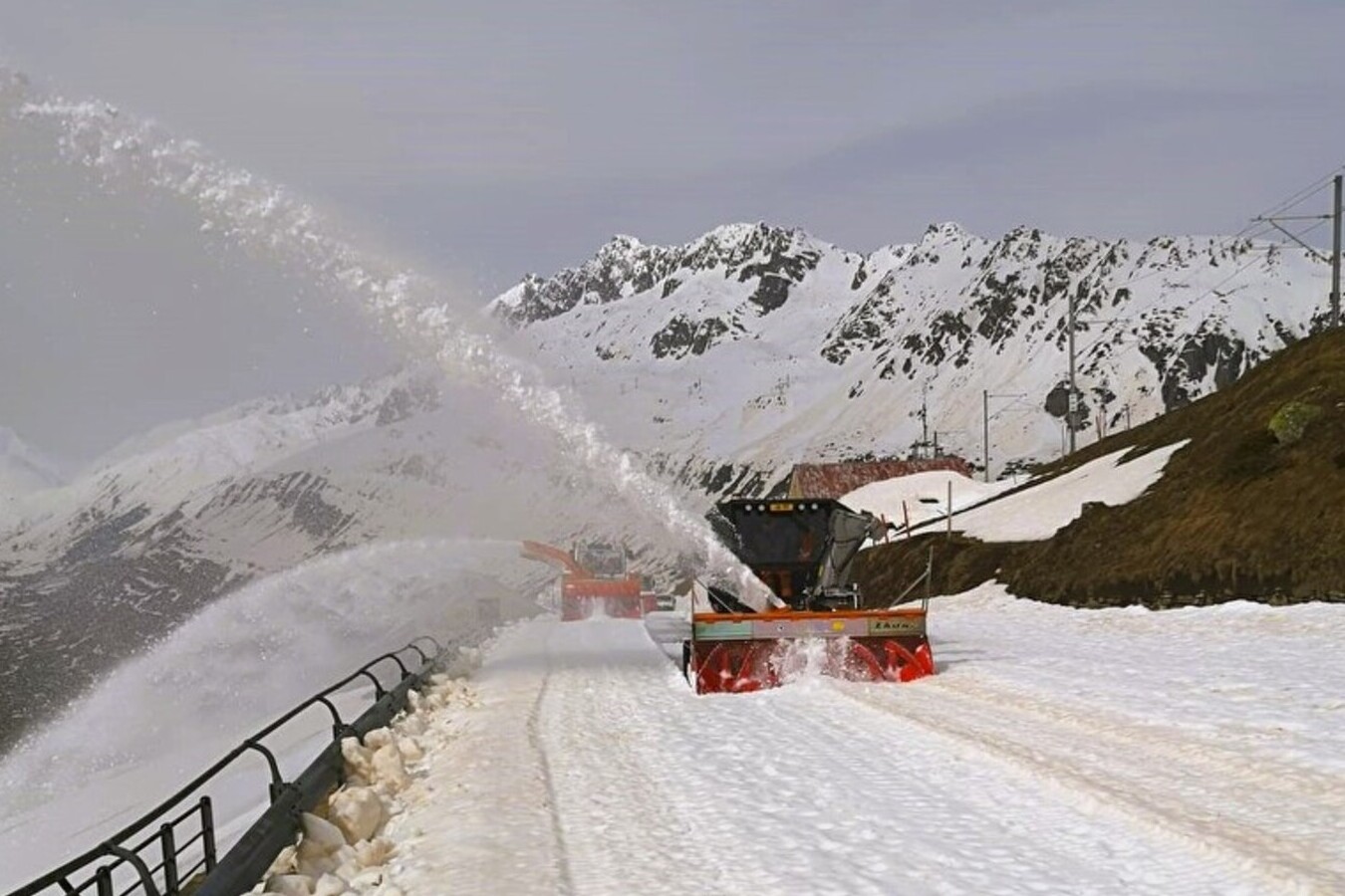 Neben der Schneeräumung mit grossen Fräsmaschinen müssen auch die Montage der Rückhaltesysteme (Leitplanken und Geländer) und der Signalisation sowie die sicherheitsrelevanten und umfangreichen Felssäuberungen und Reinigungsarbeiten ausgeführt werden.