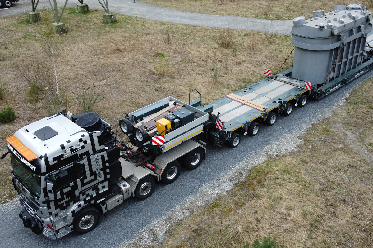 Ausnahmetransporte sind Fahrzeugkombinationen, welche die rechtlichen Vorgaben beispielsweise zu Höchstmass oder Gewicht überschreiten. Sie dürfen deshalb nur mit einer Sonderbewilligung und mit Begleitfahrzeugen auf öffentlichen Strassen verkehren. Oftmals ist dies der Fall, wenn besonders grosse oder schwere Güter von A nach B transportiert werden müssen. So auch heute, wo ein Trafo von einem Umspannwerk in Amsteg bis in den Kanton Aargau transportiert werden muss. Die insgesamt 19-achsige Fahrzeugkombination weist eine Länge von 47 Meter, eine Breite von 3.5 Meter sowie eine Höhe von 4.4 Meter auf und bringt über 200 Tonnen auf die Waage. Dieses Gewicht ist selbst für erfahrene Begleiter aussergewöhnlich, weshalb derartige Strassentransporte auch als «Königsklasse» bezeichnet werden. Nachdem das Transportunternehmen die Bewilligungen von Bund und Kantonen eingeholt hat, wurde der Transport in Absprache mit der Kantonspolizei Uri auf heute Abend festgelegt.