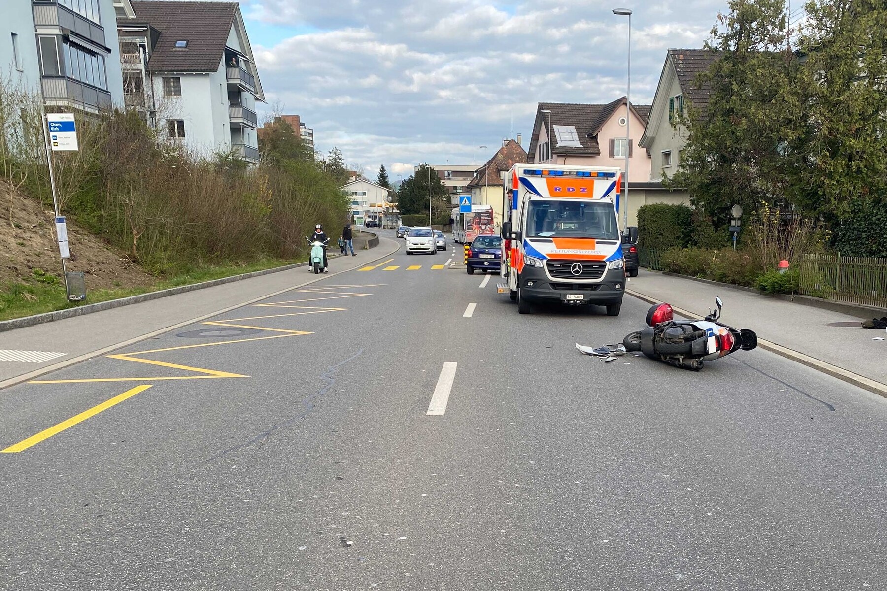 Der Rollerfahrer wurde ins Spital eingeliefert (Bildquelle: Zuger Polizei)