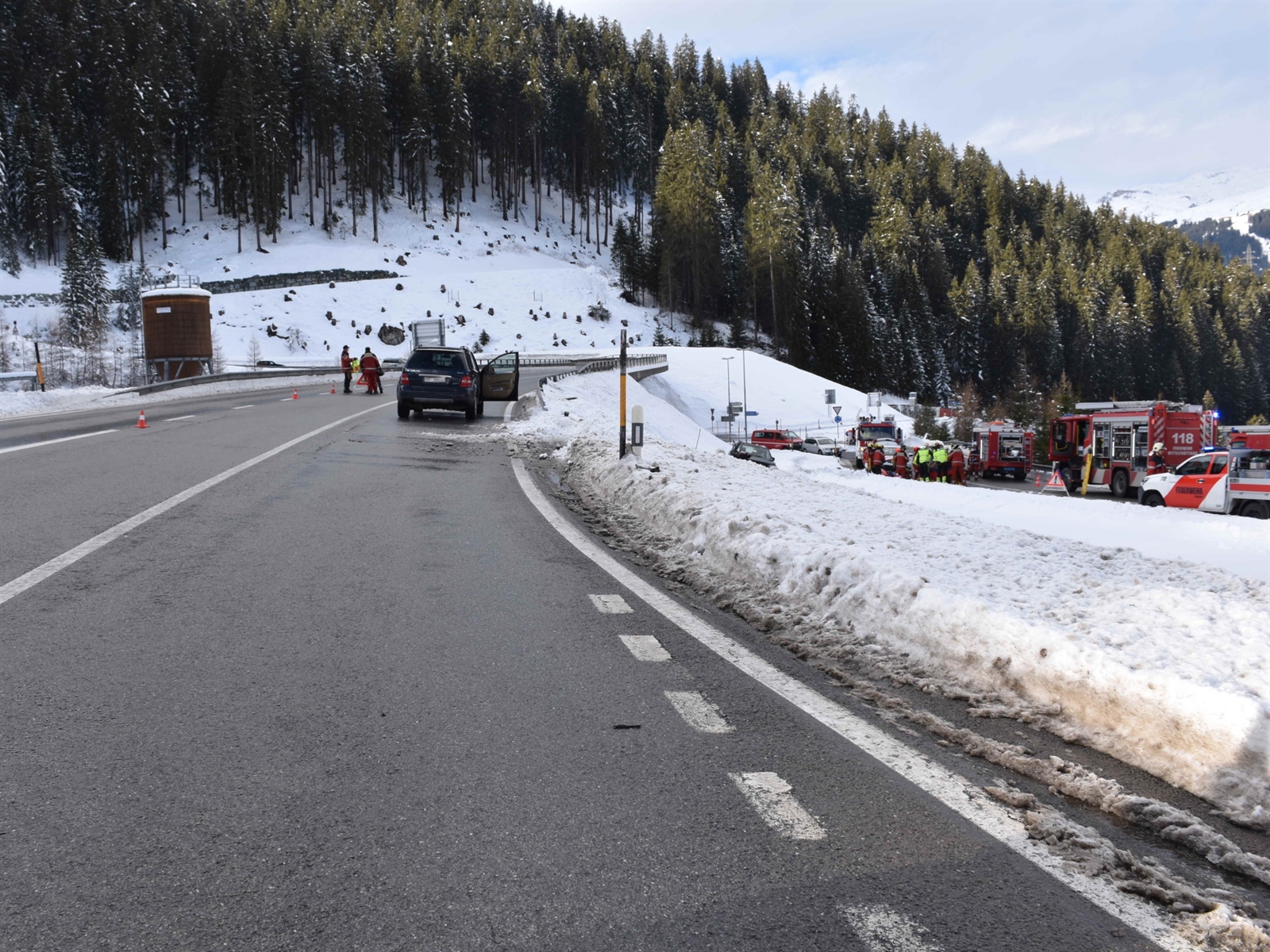 Beim Einfahren kam es zu einer Kollision, wonach das Fahrzeug des 79-Jährigen die Strasse rechtsseitig verliess und auf der Fahrerseite liegend zum Stillstand kam. Aufgrund der Meldung, dass die Insassen dieses Autos eingeklemmt seien, wurden die Strassenrettungen Klosters und Mittelprättigau aufgeboten. Nachdem diese das Fahrzeug auf die Räder aufrichten konnten, wurden der verletzte Fahrer und dessen 69-jährige verletzte Mitfahrerin geborgen.